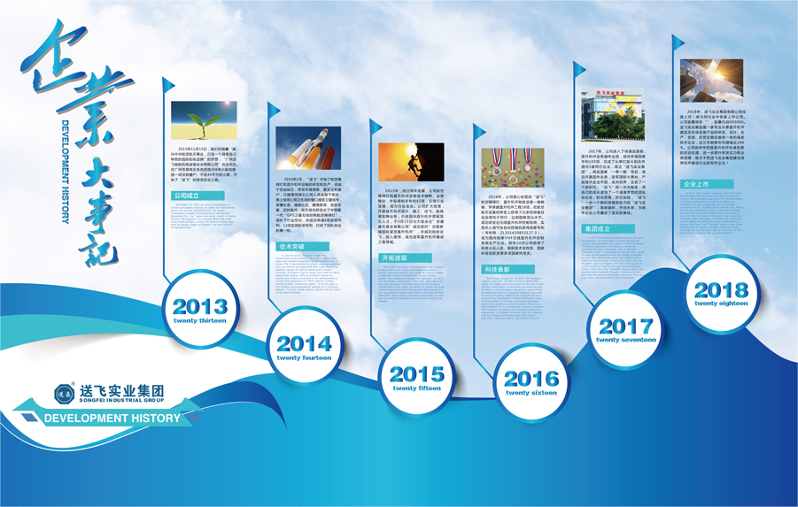 “送飛”團(tuán)隊從位于廣州市海珠區(qū)赤崗西路266號小聰創(chuàng)意園的一間不足45平米小屋開始創(chuàng)業(yè),懷揣著“振興中華航空航天事業(yè),打造一個具有自己特色的國際知名品牌”的夢想,“廣州送飛助航機(jī)電設(shè)備實業(yè)有限公司”應(yīng)運(yùn)而生。創(chuàng)業(yè)初期由于資金缺乏,研發(fā)環(huán)境簡陋,甚至沒有窗戶,只能等待其它公司的人員全部下班后,晚上借用公用衛(wèi)生間的窗口搜索衛(wèi)星信號,廢寢忘食、通宵達(dá)旦、激情澎湃、攻堅克難,歷時數(shù)月終于成功研發(fā)出中國第一代“GPS衛(wèi)星無線控制航空障礙燈”和中國第一代“VHF無線控制直升機(jī)坪系統(tǒng)”,填補(bǔ)了行業(yè)空白,并成功申請實用新型專利13項、發(fā)明專利6項,打響了團(tuán)隊創(chuàng)業(yè)的第一槍。從幾十平的小屋到整層寫字樓;從產(chǎn)品研發(fā)生產(chǎn)、直升機(jī)坪專業(yè)設(shè)計施工到機(jī)場建設(shè)一體化服務(wù);從單打獨(dú)斗到兼并國內(nèi)5家同行業(yè)公司的“送飛實業(yè)集團(tuán)”。 送飛實業(yè)的一次次蛻變,用自己的成長譜寫了一個追逐夢想的團(tuán)隊創(chuàng)業(yè)史。時光荏苒、歲月如梭,送飛實業(yè)一步一個腳印發(fā)展到如今的“送飛實業(yè)集團(tuán)”。